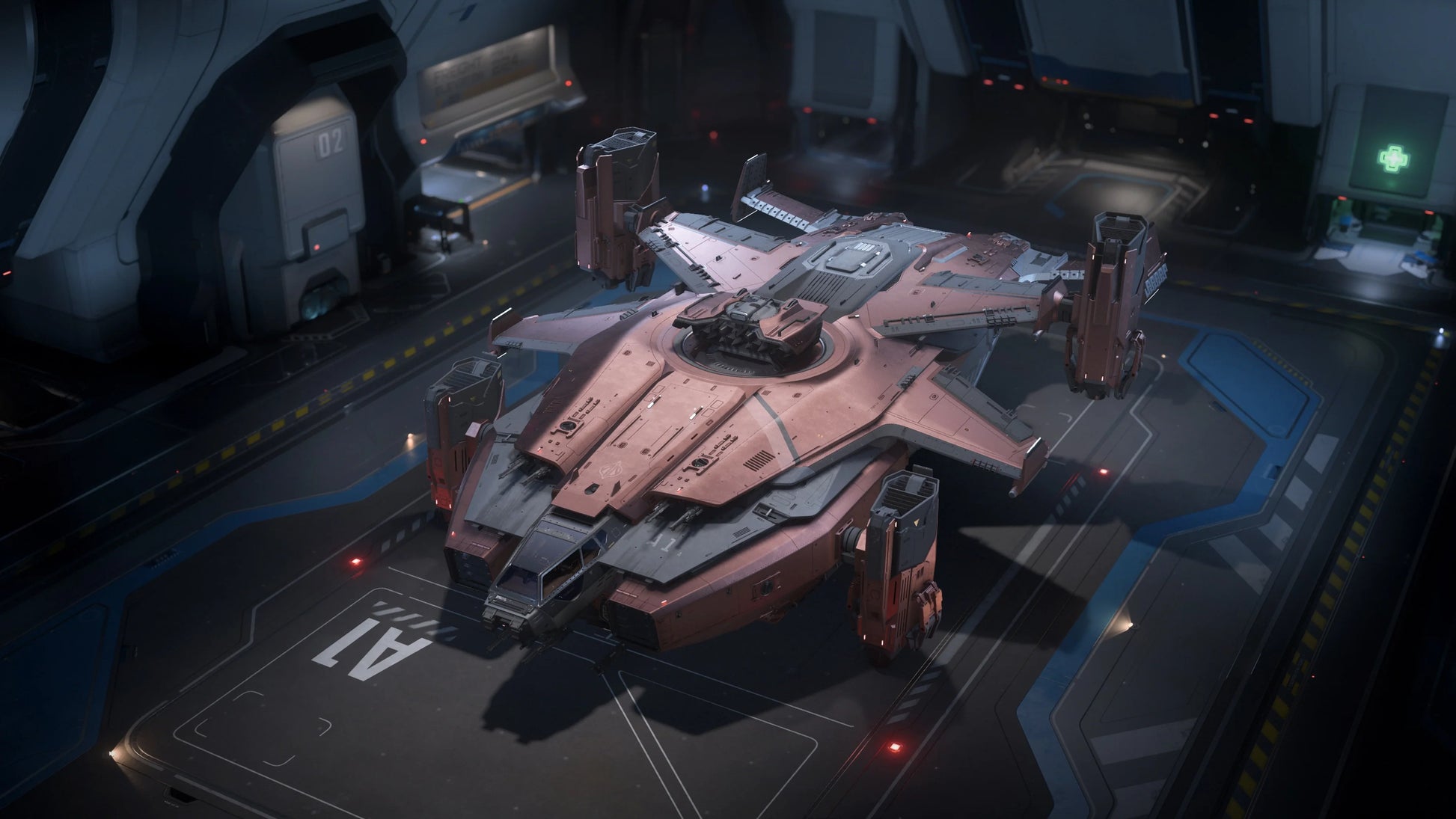 The Valhalla livery melds a dazzling copper finish with green accents to give the Anvil Asgard a truly distinct appearance, only available to members of the Chairman’s Club.